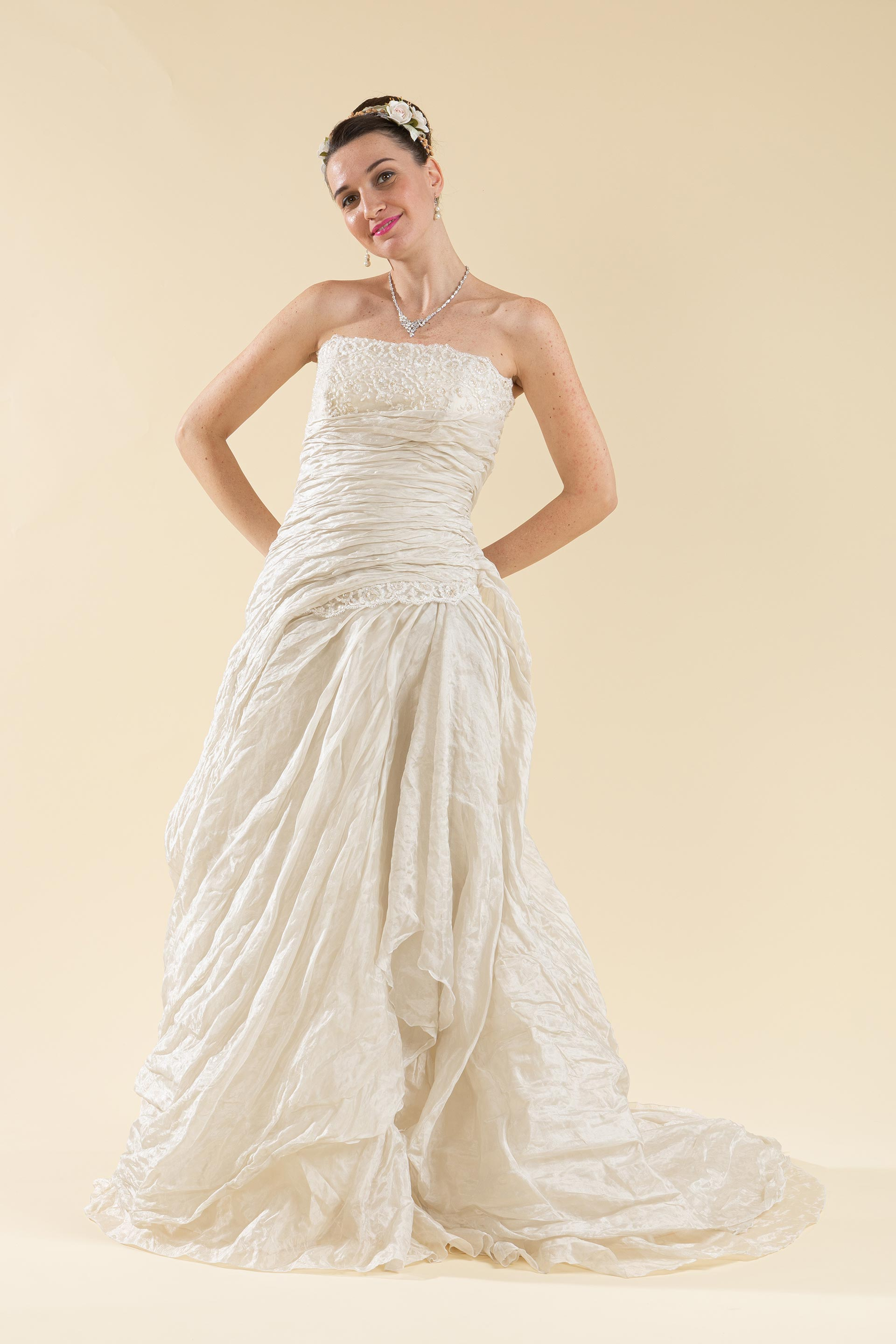 Aiutare le future spose di palermo a trovare l'abito perfetto. Abito da sposa in satin color avorio, corpino in pizzo chantilly rebrodè ricamato con cristalli, fusciacca in georgette sotto il seno che va a chiudersi con un mezzo fiocco nella parte posteriore. Salone internazionale dell'abito da sposa e da cerimonia. Clicca per andare al negozio →. Le calze saranno nere o antracite, in cotone o.